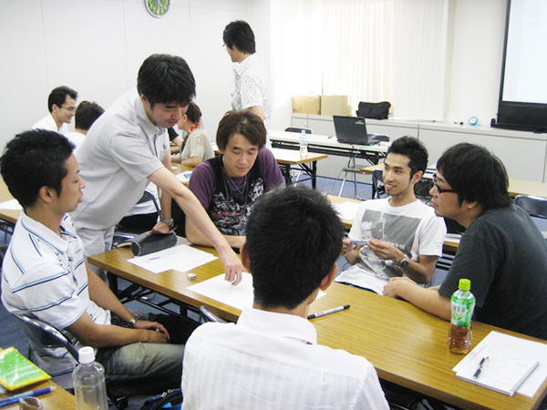 アルプス技研の各営業所内では、エンジニアが自発的に勉強会を行い、スキル向上に努めています。その回数は年間1790回、延べ受講者数22,869人におよぶほどに活発です。先輩エンジニアが講師となり、体験談を交えながら教えたり、技術者仲間が集まって意見交換を行ったりします。時には他の営業所のエンジニアを講師として招くなど、営業所の枠を超えた交流も活発です。勉強会のテーマは、技術的なことだけでなく、コミュニケーションやマネジメントなど多岐にわたります。