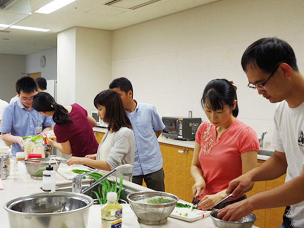 アルプス技研には中国、ベトナム、韓国といった国々のグローバルエンジニアが多数活躍しています。異文化理解を深めるため、家庭料理づくりなどそれぞれの文化の紹介を行う「国際イベント」を開催しています。グローバルエンジニアにとってはより良い環境づくりのきかっけに、日本人エンジニアにとってはグローバルな視点を養う絶好の機会となり、アルプス社員としての結束力を高めています。