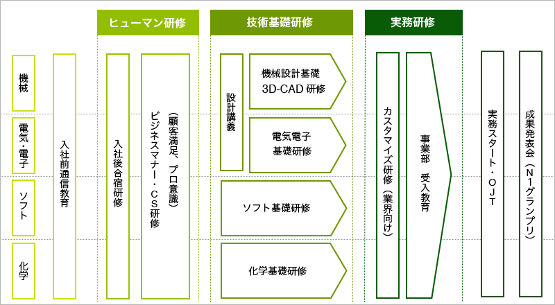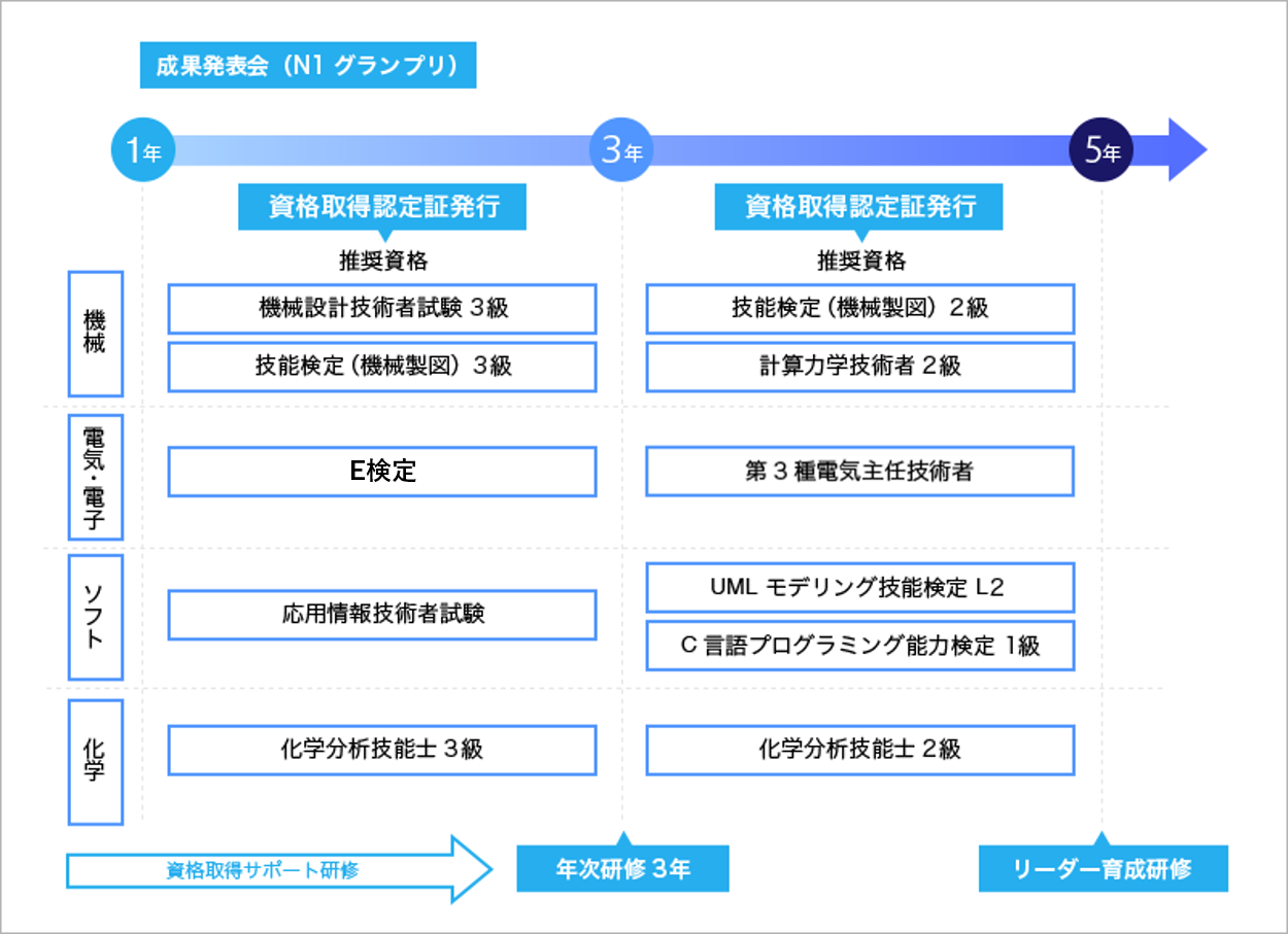 | リーダー研修 | 業務マネジメント(OJTによる設計開発プロジェクトマネジメントの経験) |