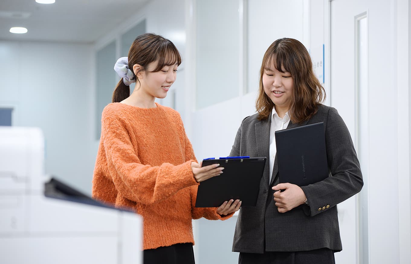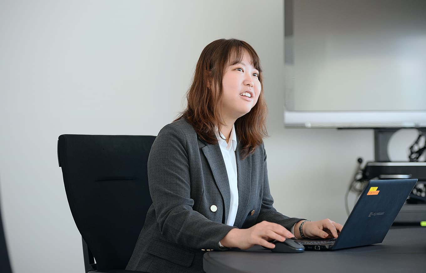 経営理念「Heart to Heart」を掲げ、人と人との心のつながりを大切にしている点に共感したのが入社を決めた大きな理由。また、コロナ禍での就職活動中に、タイミング良く対面で面接できたことにご縁を感じたのも理由の一つだった。入社後、原子力プラントメーカーで勤務開始。3年勤務後、現在の勤務先である光学機器メーカーにローテーション(勤務先変更)した。